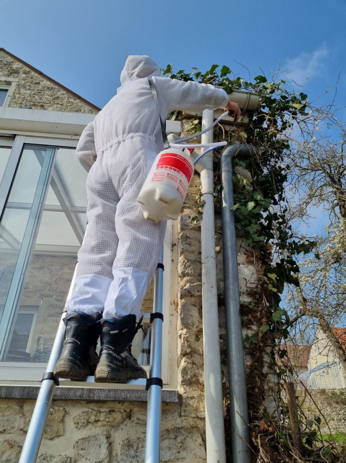 N'essayez pas d'accéder à un nid de guêpes par vous-même ! Les piqûres peuvent être sévères, et les chutes depuis une échelle ou un toit sont fréquentes. Chaque année, de nombreux accidents surviennent lorsque des particuliers tentent de détruire un nid de guêpes par eux-mêmes.